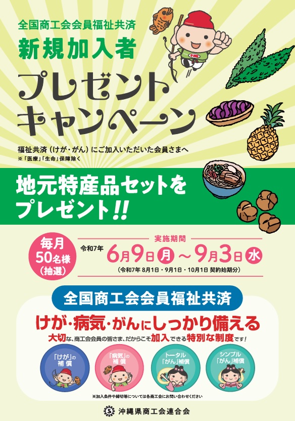 表題の件、全国商工会福祉共済について、新規加入者向けプレゼントキャンペーンが開始しました。