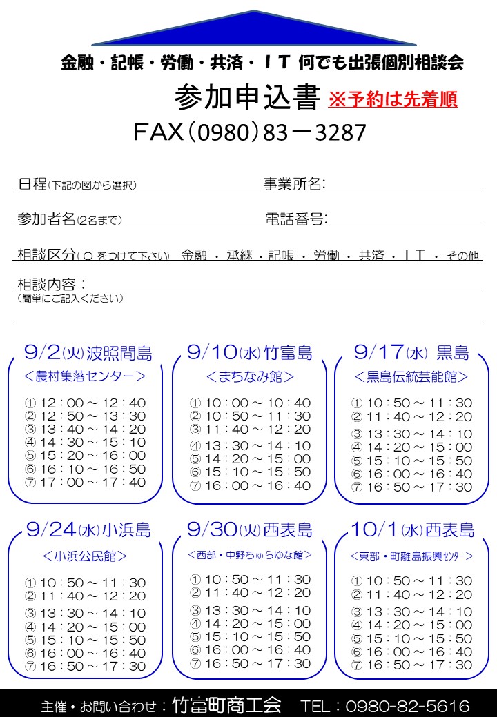 お申込み・お問い合わせは竹富町商工会へご連絡ください。